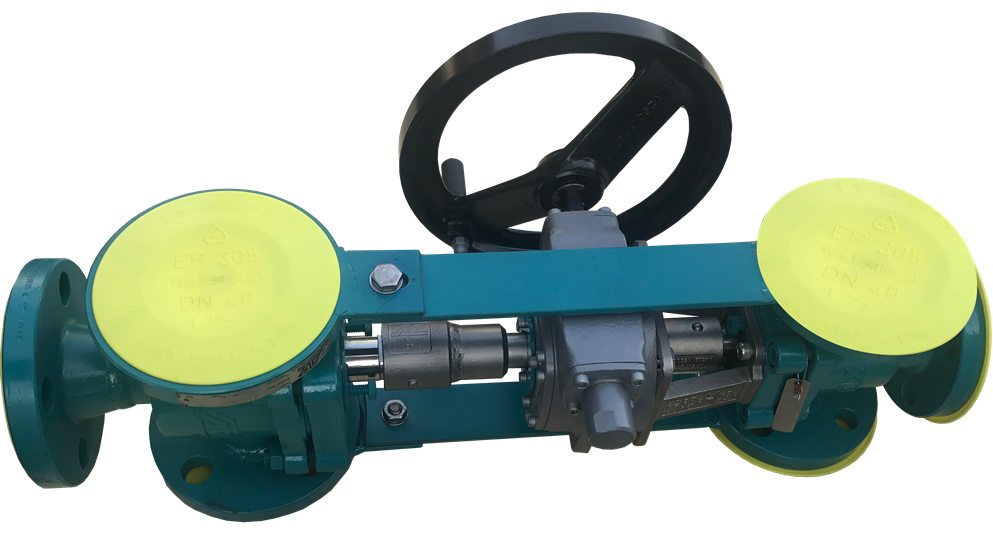 Change-Over-Valves are used to connect two safety valves to a pressure system using one joint pipe. The operating system runs normally, with one safety valve in operation while the